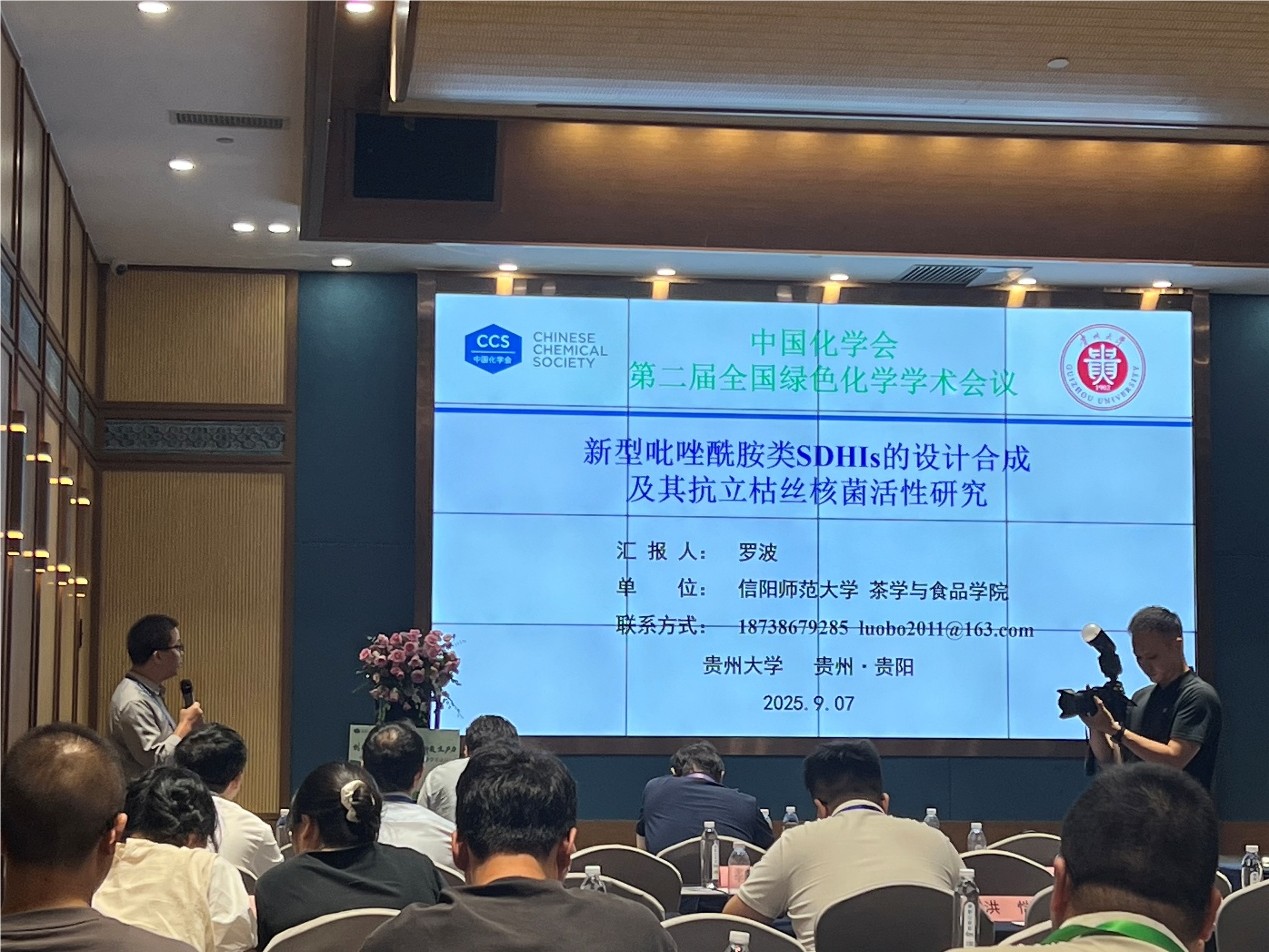 会议分为两个阶段:第一阶段为大会开幕式,第二阶段将举行六个专题分会,分别涵盖“高效绿色催化剂设计与催化反应”、“绿色反应路线与绿色产品”、“绿色化工科学与技术”、“绿色农药”、“绿色高分子材料化学”以及“育人育才研究生论坛”等议题。每个分会都将邀请相关领域的专家学者进行深入报告与交流。公司罗波博士应邀作了题为“新型吡唑酰胺类的设计合成及其抗立枯丝核菌活性研究”的学术报告,介绍了团队近3年来在新型绿色环保琥珀酸脱氢酶抑制剂的创制与应用方面所取得的系列成果。