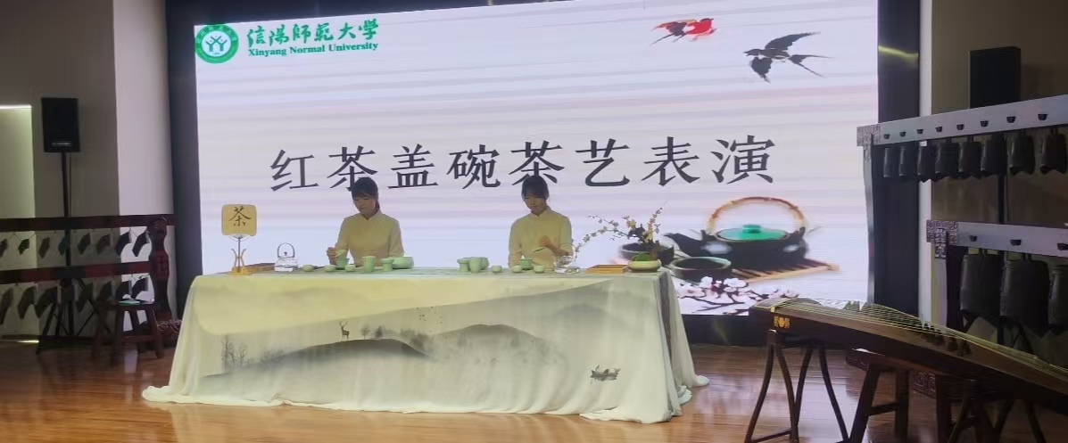 活动伊始,李庆会博士以亲切的自我介绍拉近了与员工的距离。随后,她以生动幽默的语言,从泡茶的温度这一关键要素切入,系统讲解了绿茶、普洱茶、乌龙茶等常见茶类的适宜水温、茶水比例及冲泡技巧,使同学们对茶叶冲泡的科学性与艺术性形成了清晰认识。在此基础上,李博士进一步围绕茶礼仪的核心内涵展开阐述,精妙解读了“礼者,敬人也”这一基本理念,深刻揭示了茶文化中蕴含的尊重、谦和与自省的人文精神,为同学们构建起一个兼具理论深度与实践意义的茶礼仪认知框架。紧接着,茶艺表演环节将现场氛围推向高潮。现场依次呈现了三套独具特色的冲泡技艺:在玻璃杯冲泡展示中,2024级茶学班王佳宇与刘晓亚同学运用“下投法”,素手轻扬,以“凤凰三点头”的经典手法注水三巡,水流如瀑,既充分激荡茶叶,亦传递出对来宾的深深敬意。嫩叶在杯中舒展沉浮,宛若碧波起舞,生动诠释了绿茶特有的“茶舞”之美。在盖碗冲泡环节,2023级茶学班张琪与魏晴同学手法精准娴熟,通过调节盖隙巧妙控制水温,不仅展现了盖碗集容纳、冲泡、品鉴于一体的实用价值,更传递出“三才碗”所蕴含的天、地、人三才和合的哲学意境。