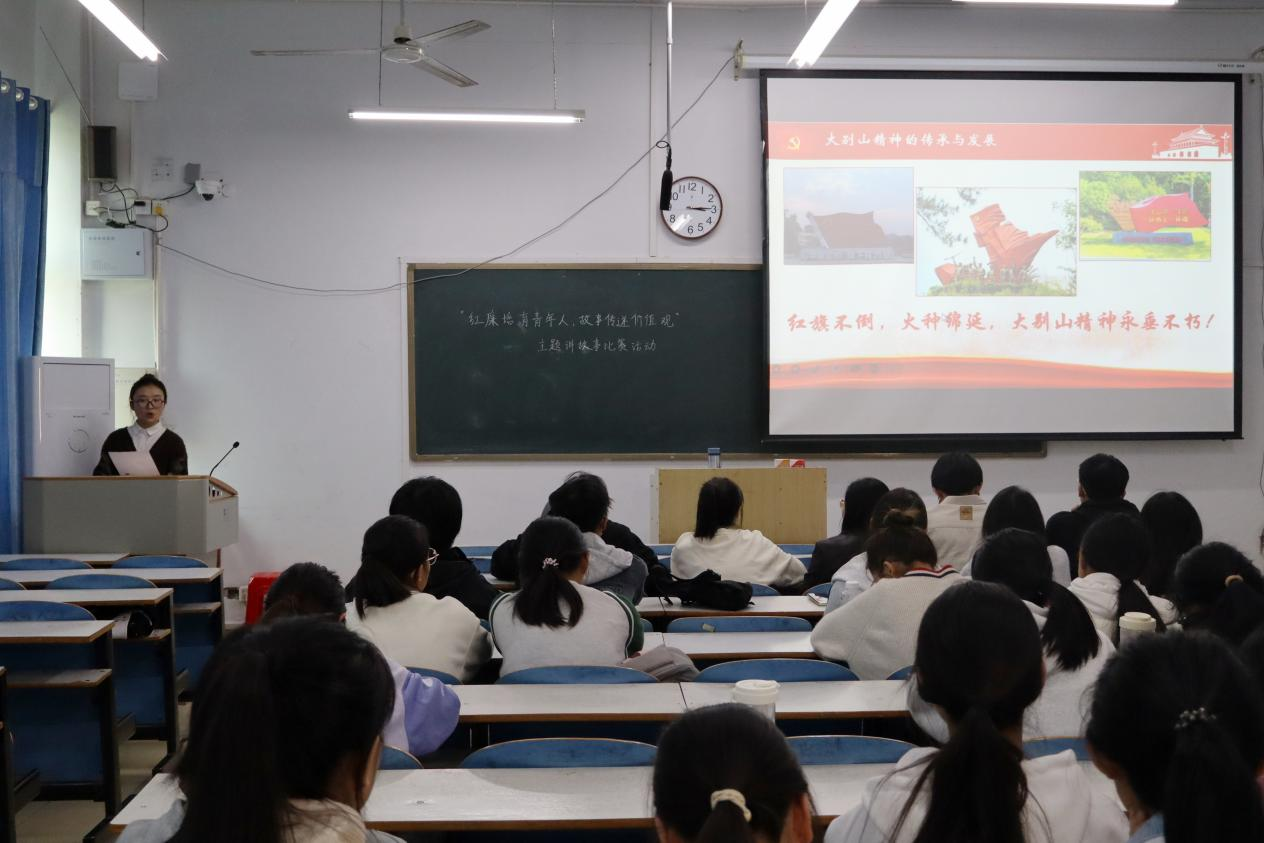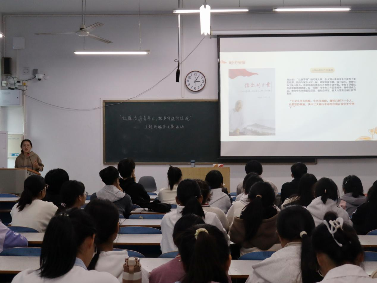 活动伊始,经典红色影片节选片段的放映拉开帷幕,生动的画面和真实的情节深刻展现了爱国志士的责任担当,举国上下莘莘学子,游行演讲启发民智,引得在场师生无不为之震撼和动容,开场气氛逐渐活跃。随即,比赛正式开始。参赛人王羽彤以大别山的儿子——刘名榜的故事展开叙述,向同学们深刻诠释了红廉文化的深刻内涵,激励大家争做红廉青年,希冀展望红廉未来。她清晰、流畅的演讲和深情的表达赢得了在场观众的阵阵掌声。紧接着,参赛人黄湘芮以开国大将——王树声的事迹为载体,绘声绘色的演讲伴以旋律激昂的音乐,大力赞扬了共产主义战士艰苦卓绝的革命斗争和忠诚无私的奉献精神,同学们备受鼓舞,收获颇丰。演讲结束后,朱晓雯对两位同学的表现深表感慨和欣慰,并对其做出详细点评,以身示范激情演讲,鼓舞同学们应从大别山红色文化中感悟党的光辉历程,使大别山红色基因薪火相传,让大别山红色精神在新时代焕发新生。最后,经在场评委统一商议,2024级食品质量与安全班黄湘芮同学荣获本次大别山红廉育人专项活动暨讲价值观故事一等奖。