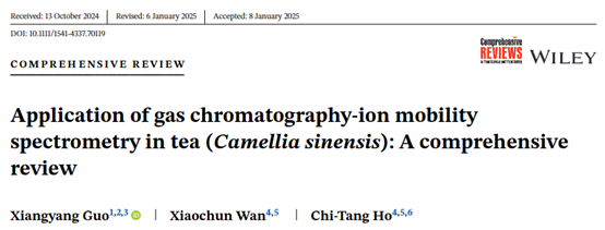 近日,公司郭向阳博士在国际知名的食品科学领域学术期刊《Comprehensive Reviews in Food Science and Food Safety》上发表了一篇题为《Application of gas chromatography-ion mobility spectrometry in tea (Camellia sinensis): A comprehensive review》的综述论文。该论文系统综述了气相色谱-离子迁移谱联用技术(GC-IMS)在茶叶研究中的应用进展,重点探讨了其在茶叶香气分析、品质评价及加工监控中的优势与潜力。